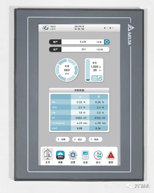 天門紡機在新一代T1系列并條機設(shè)計中,創(chuàng)新性地融入“系統(tǒng)化、人性化、圖形化”的設(shè)計理念。